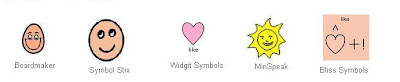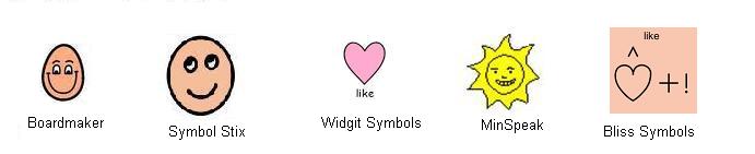 Symbols Libraries: There are a variety of symbol libraries that are used in augmentative communication systems. Together with your child’s SLP choose a symbol set. Here are some examples of some commonly used symbols:
