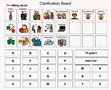 Think about a spot for clarification messages on a communication display or speech generating device and teach how to use these messages effectively. Just because they appear on a display does not mean that a person will automatically know how to use them. Being able to give feedback in this way can also be tricky