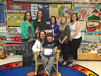 The Intensive Behaviour Intervention (IBI) Autism Team at the St. Thomas Classroom are shining stars in supporting kids in using symbols or text to help develop their language and speech skills. Working alongside the Augmentative Communication Service (ACS), they have been open to learning new ideas, and sharing their own strategies and expertise to work together to meet clients' needs. Initially, this team used a Core Vocabulary board to support one student in learning how to clearly let others know what he thought, expand his language to bigger sentences, joke, and engage with others. Now the team uses those strategies seamlessly, incorporating Core Vocabulary throughout the day with many kids in the class - both those who have advanced to a more high-tech voice output system and students who are just getting started with a few symbols. Not only is this team hard-working as they integrate augmentative communication strategies with the IBI program, but they do it in a fun and creative way as they make a difference in the lives of the children and families they support. Way to go!
